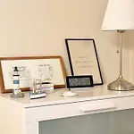 يتمّ توفير مرافق لكي الملابس ومكواة مع طاولة الكي، بالإضافة إلى تلفزيون الكابل مع أفلام حسب الطلب وجهاز التلفزيون تحت تصرف الضيوف. كما تمّ تجهيز الشقة بالأريكة ومكتب العمل. تتوفّر أسرّة مع الوسائد الزغبية المضادة للحساسية تحت تصرف الضيوف. ويشتمل الحمام على المرحاض المنفصل وحوض الاستحمام والدوش، بالإضافة إلى مجفف الشعر وملاءات الحمام.